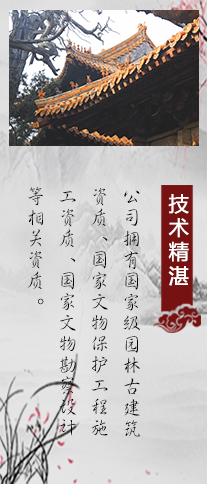 曲阜義德古建藝術(shù)有限公司坐落在思想家、教育家、儒家學派創(chuàng)史人、孔子的故鄉(xiāng)--曲阜。公司成立于1983年,是集古建園林古建設(shè)計、仿古建筑建造施工,文物古建筑修繕、文物堪察設(shè)計、園林古建筑施工、裝修、大木制作、油漆彩繪、細木雕刻、仿古改造、雕塑、殿堂用品制作為一體的國家園林古建筑資質(zhì)、裝飾裝修資質(zhì)、國家文物保護工程施工資質(zhì)、文物保護勘察設(shè)計資質(zhì)、建筑工程施工總承包資質(zhì)、古建筑一級資質(zhì)、結(jié)構(gòu)補強資質(zhì)的曲阜古建筑企業(yè)。公司經(jīng)過30余年的發(fā)展壯大,榮登山東省綜合實力知名的古建筑企業(yè)。公司多年來屢次獲得省市級“重合同、守信用”企業(yè)稱號,所有工程均實現(xiàn)高質(zhì)量高安全雙圓滿竣工,得到建設(shè)單位及社會各界的好評。